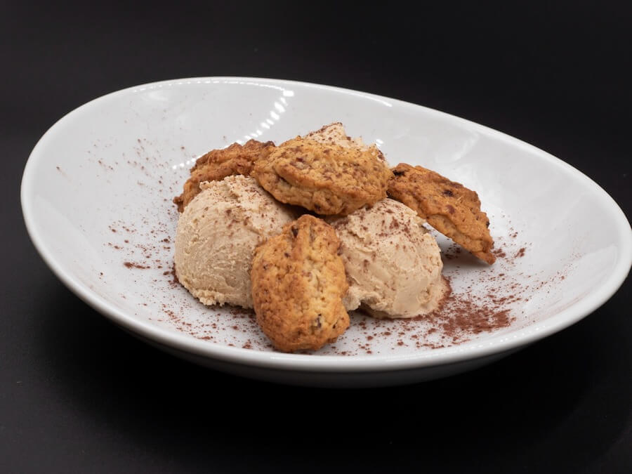 Biscotti di zenzero e datteri serviti con gelato –  Biscuits au gingembre et aux dattes servis avec la glace – Ginger and date biscuits served with ice cream